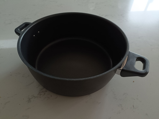 This is a genuine replacement 2L cooking pot or 'misa' for a Remoska standard. Featuring two handles and a flat metal base. This pot must be used with the correct stand.